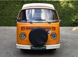 Cet exemplaire a été livré neuf en 1978 à son premier propriétaire en Hollande, peint en couleur Marinogelb avec un toit Dormobile en option. Le Volkswagen a beaucoup voyagé au cours de sa carrière en tant que camping-car, la meilleure preuve en est les vignettes routières suisses de 1989 à 2009 collées sur le pare-brise sans interruption. Le propriétaire actuel a acheté la voiture en 2015 car elle était dans un état complètement d'origine. Environ 50 % de la peinture est encore d'origine, mais l'intérieur était un peu usé. Il a décidé de rénover l'intérieur du camping-car avec des matériaux appropriés et a installé un nouveau réfrigérateur et un évier. Le compartiment avant est toujours d'origine avec ces sièges en vinyle marron typiques et des tapis de sol en caoutchouc. Le VW était alors immatriculé sur une plaque d'immatriculation belge mais conservé dans sa maison d'été dans le sud de la France où sa famille l'utilisait pour des voyages romantiques à la campagne.